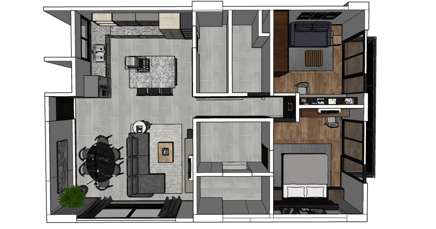 Se entrega un portafolio digital con lo necesario para poder ejecutar el proyecto. Desde planta de distribución, renders, planos técnicos, catálogo de mobiliario, materiales, pintura, iluminación, decoración, mobiliario y más.